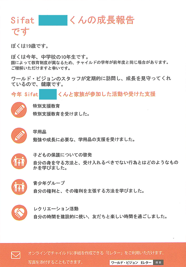 ワールド・ビジョン・ジャパンからチャイルド・スポンサーシップ対象チャイルド達の成長報告が届きました